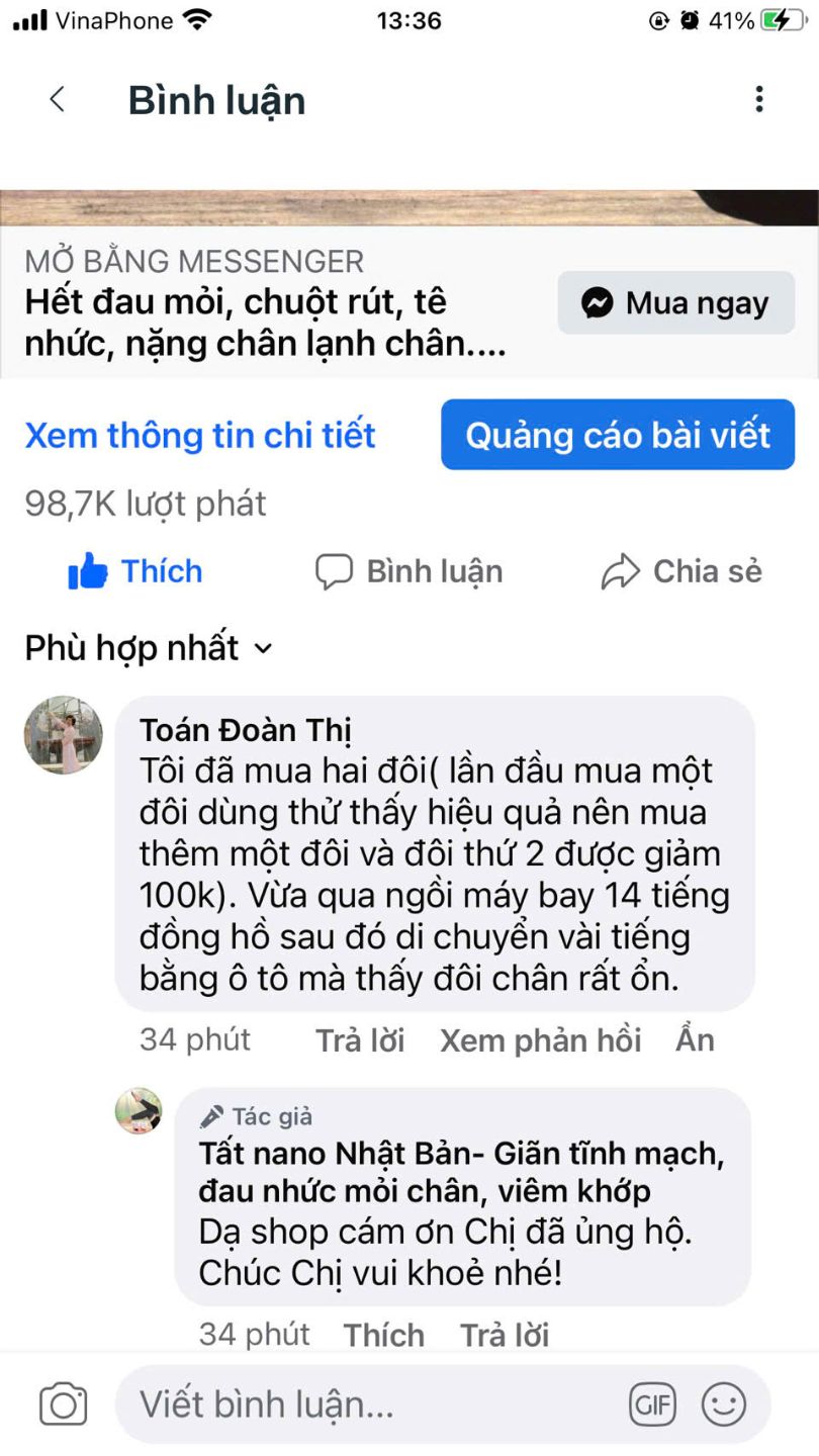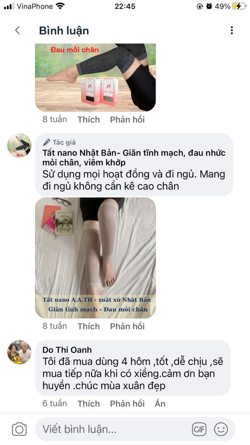 Tôi xài tất nano hết chuột rút và gân xanh cũng mờ đi. Cám ơn xốp