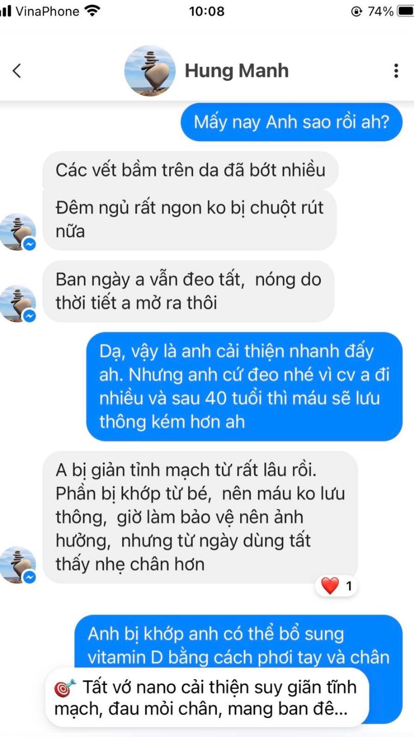 Mấy ngày đầu mang vào tôi cảm giác chân cứ rần rần khi mang vớ nano. Chỉ mấy đêm mà chân tôi đỡ đau nhức nhiều lắm